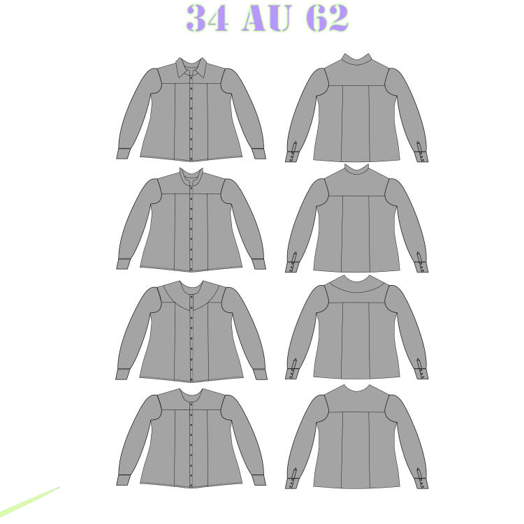 | Tailles | 34 | 36 | 38 | 40 | 42 | 44 | 46 | 48 | 50 | 52 | 54 | 56 | 58 | 60 | 62 |