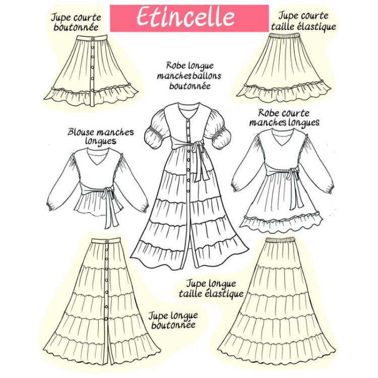 - 1 bobine de fil élastique ou 1.5×0.15 m d’élastique plat (seulement pour les manches ballons)