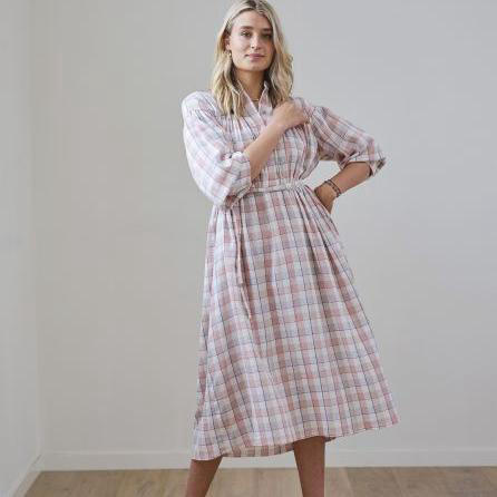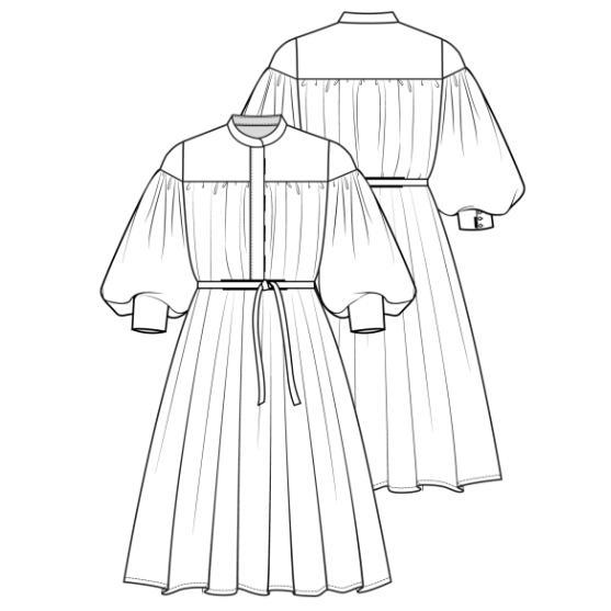 Conseil d'étoffe : coton organique imprimé texturé. Le modèle peut aussi être confectionné avec la popeline, la double gaze de coton ou le lin viscose.