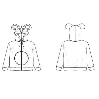 Conseil tissu : Vous devez utiliser un jersey extensible pour ce patron. Si vous avez choisi un tissu à sweat épais molletonné, nous vous conseillons de réaliser la doublure de la capuche dans un jersey plus fin. Si vous avez choisi une bouclette ou un punta, vous pouvez utiliser le même tissu pour la doublure de la capuche.