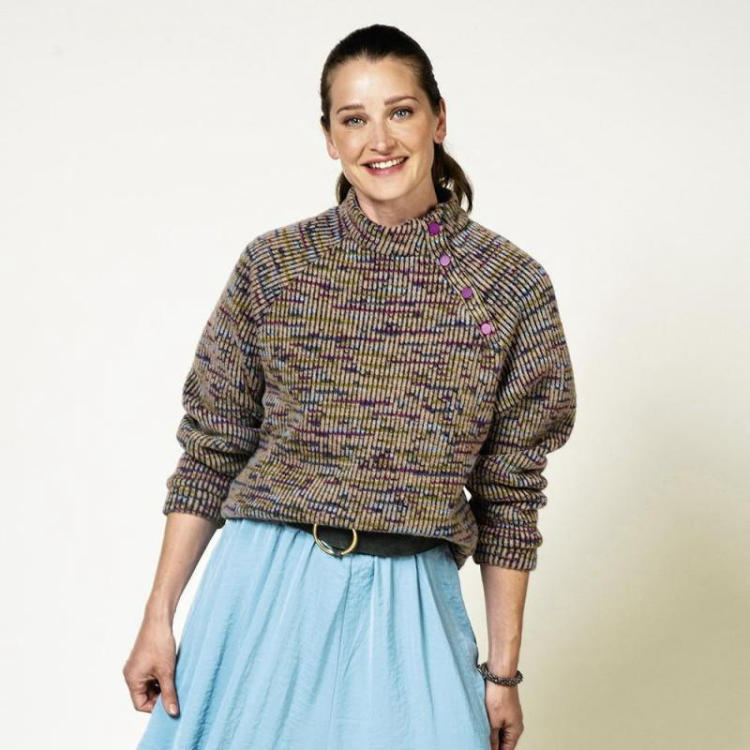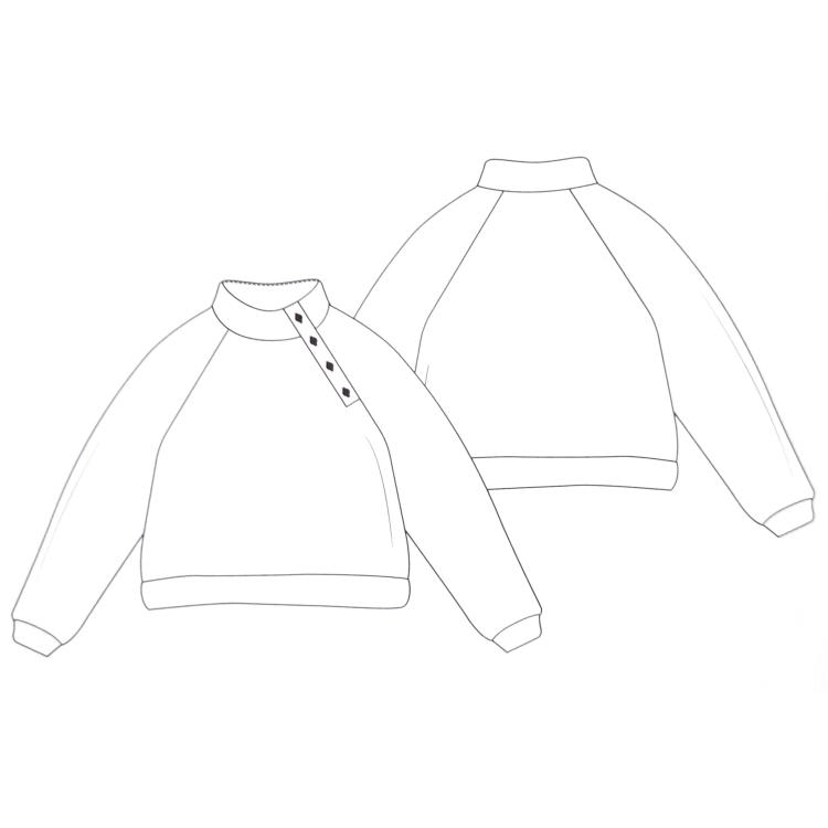 Conseil tissu : Nous avons utilisé un tissu tricoté épais pour notre pull, mais vous pouvez également le réaliser un tissu pour sweat-shirt ou un autre tissu extensible. Même les tissus peu extensibles sont utilisables, grâce à la fermeture à boutons à l'encolure et à la coupe légèrement oversized. Si votre tissu contient de la laine et pique légèrement, vous pouvez couper l'intérieur du col et les bords manchette en tissu côtelé. Ce pull est relativement court, mais vous pouvez le rallonger très simplement en ajoutant la longueur voulue aux parties A et B.