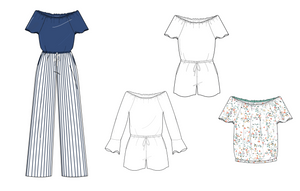 · PANTALON Manches Courtes : 280 cm de tissu principal (x 140 cm de laize) + 50 cm de tissu doublure