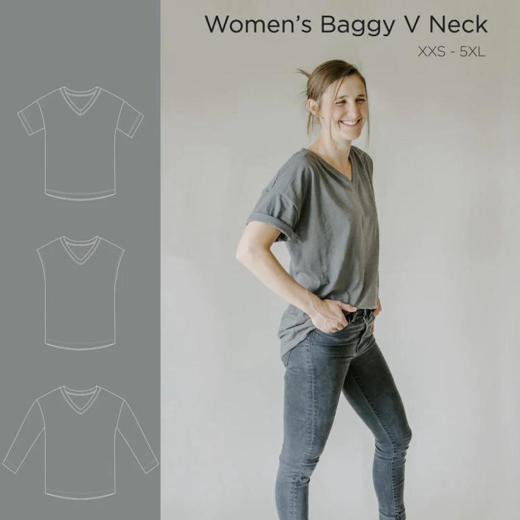 Ce t-shirt est conçu pour être surdimensionné et long. Des lignes droites, pas de courbes, super simple. Le V peut être difficile, mais les instructions vous guident pas à pas. Il est livré avec des options de manches courtes et longues (et une option sans manches, presque longueur caraco). Il existe également des instructions détaillées sur le réglage de la hauteur pour obtenir la longueur de chemise idéale !