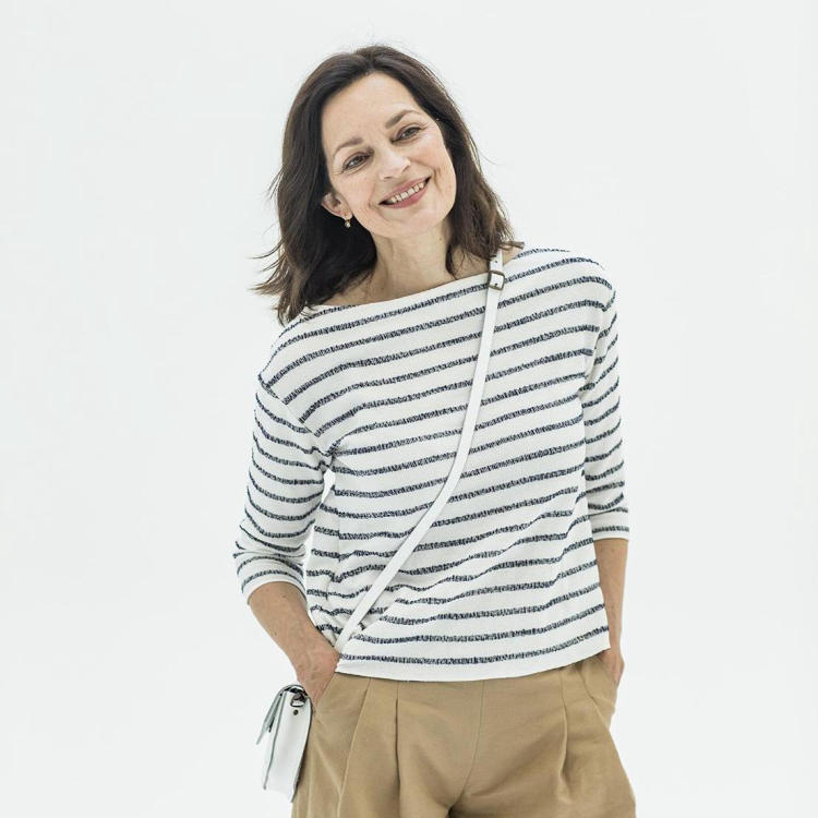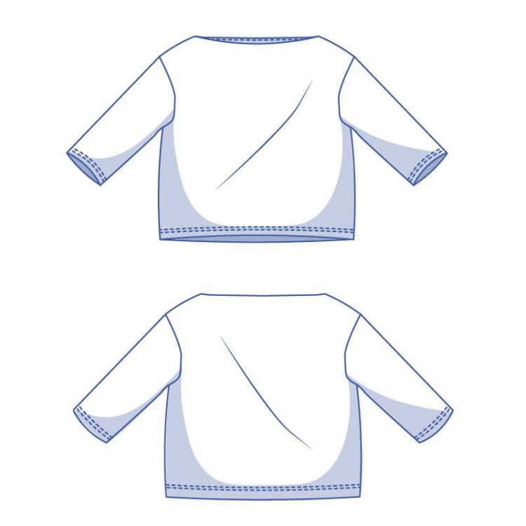 Réalisez le t-shirt Afra en jersey. Vous pouvez utiliser un jersey de viscose, de coton, une bouclette... N'oubliez pas que ce patron convient uniquement pour le jersey.