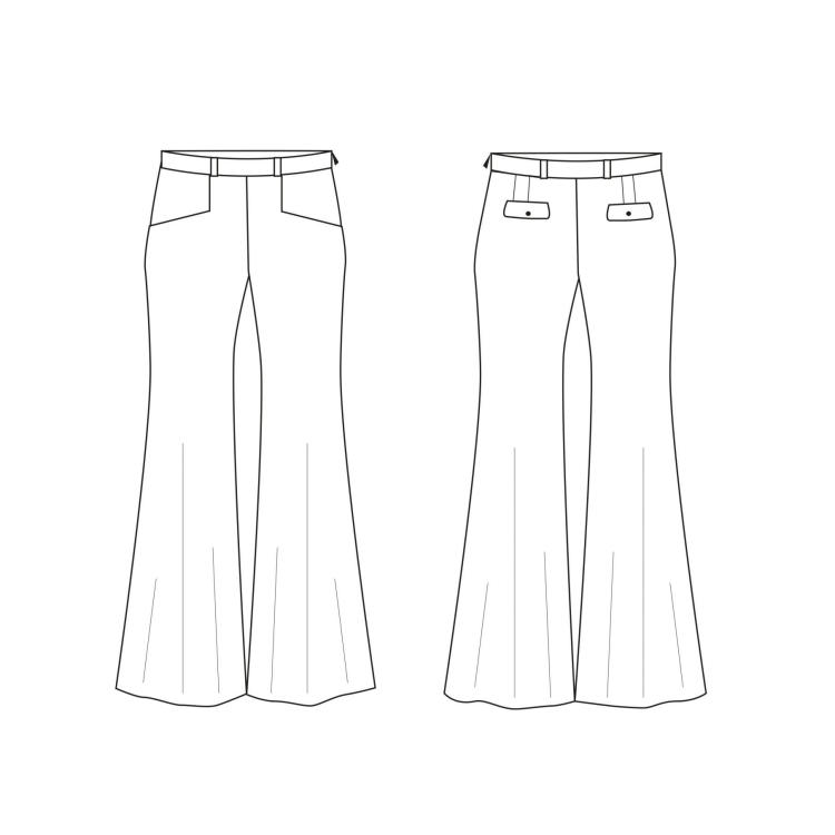 La pantalon «Mambo» se caractérise par son style 70’s avec une coupe bootcut revisitée. Mambo est un pantalon ajusté sur les hanches jusqu’à la mi-cuisse, il est donc impératif de le coudre dans un tissu extensible. Le joli détail de coupe des poches carrées de devant et les fausses poches rabat dans le dos apportent élégance et modernité à ce modèle. Mambo se ferme par un zip invisible sur le côté et une attache latérale à la ceinture.