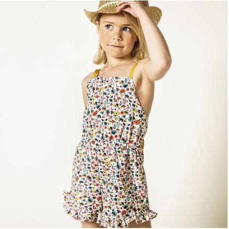 Conseil tissu : Pour ce patron, préférez un tissu tissé fin. Le coton ou le lin sont parfaits. Nous déconseillons les tissus souples ou tricotés. Un tissu tricoté est possible si vous le choisissez un peu raide, comme un punta ou un tissu à bouclette fins. Le tissu pour le volant aux jambes ne doit pas être trop épais.