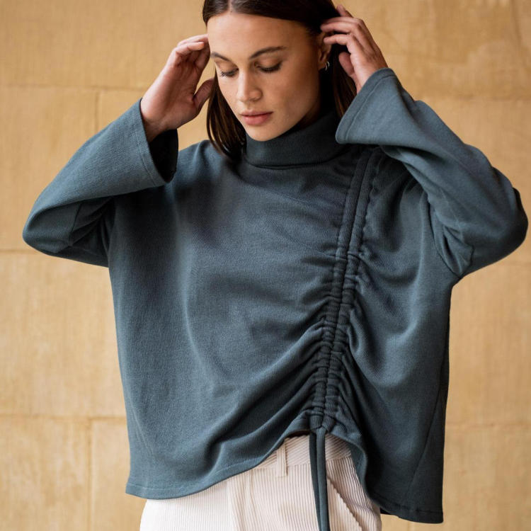 Tissu conseillé : Jersey côtelé, tissu éponge, néoprène, interlock, jersey jacquard, maille tricot, velours stretch : Soraya sera magnifique dans plein de matières mais tous les cas choisissez un tissu extensible..