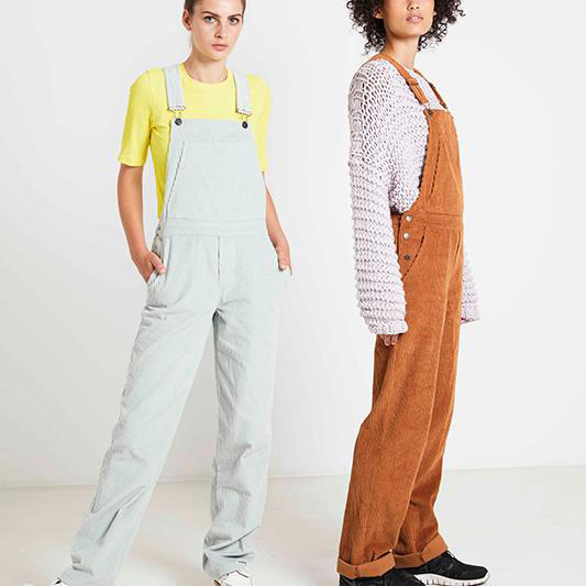 Pour la Salopette Constance, utilisez un tissu assez lourd avec un tomber relativement souple, par exemple un velours côtelé fin ou gros en coton. Vous pouvez également utiliser du denim ou des tissus plus épais en laine. Évitez les tissus rêches qui ne sont pas assez souples. Lavez le velours côtelé en coton d’abord avant de le couper, car ce tissu rétrécit dans la longueur !
