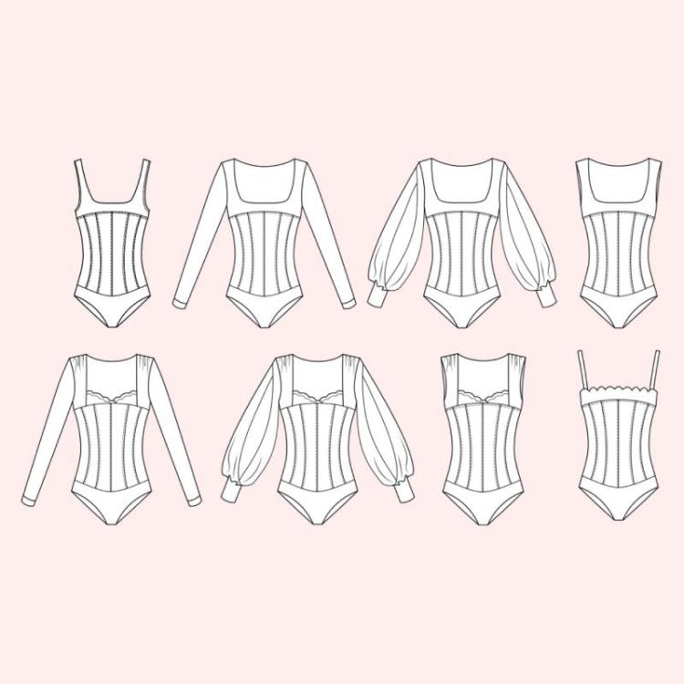 - Pour une version haut et corset dans la même matière : 1 m sur 1m 80