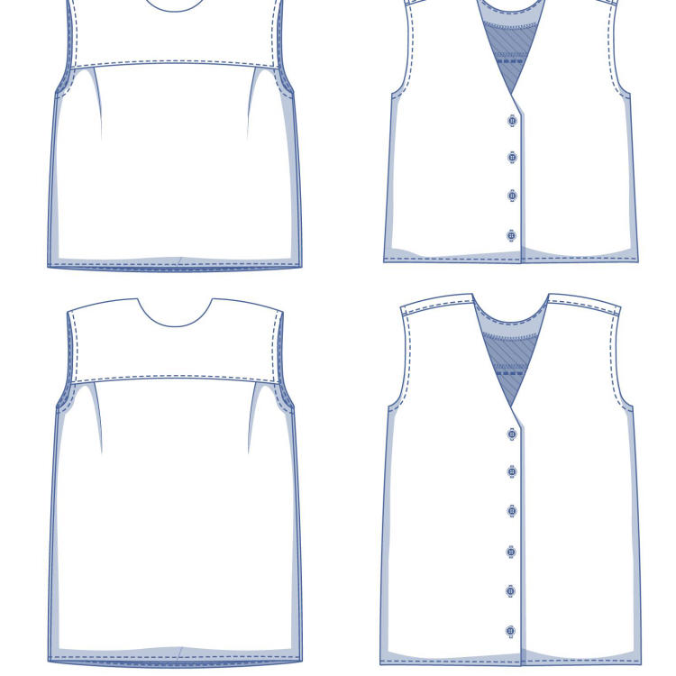 Ce très joli top Oversize sans manches associe une encolure arrondie toute simple devant et un charmant décolleté en V avec patte de boutonnage au dos. Les plis discrets sur le devant garantissent un beau tombé. Océan présente encore d’autres détails : au lieu de la couture d’épaule classique, l’épaule est légèrement décalée dans le dos. Ce petit haut sans manches est long, mais vous pouvez bien sûr choisir la longueur qui vous convient.