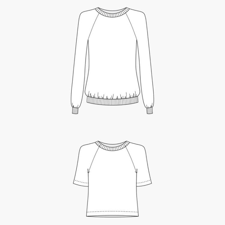 Manches longues + bord-cote dans le tissu