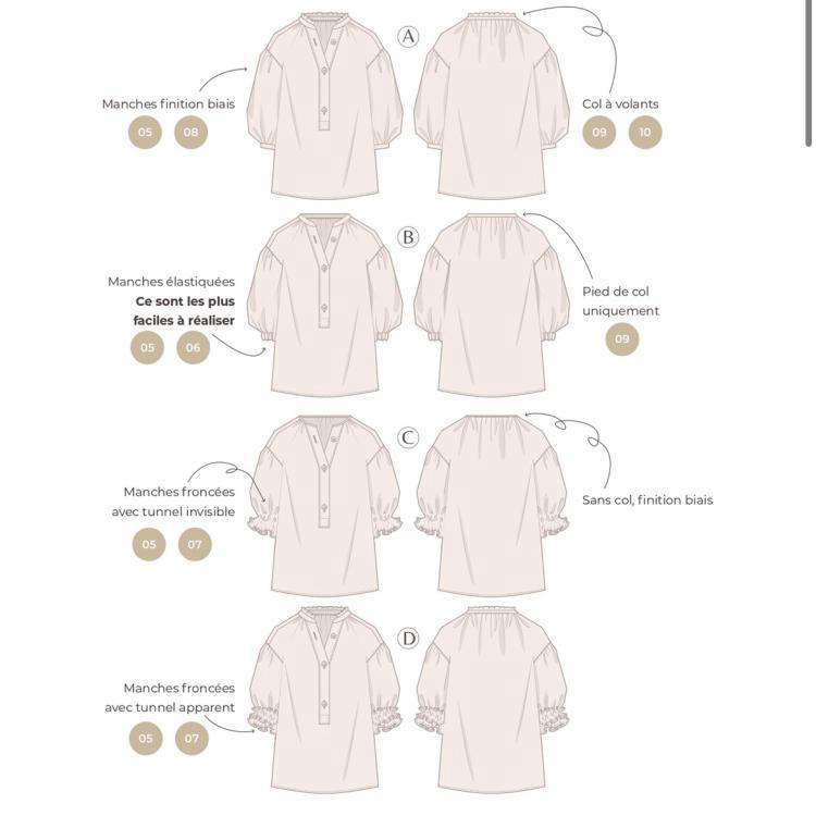 Manches froncées avec tunnel visible
