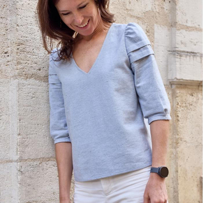 Manches courtes sans pli, encolure en V