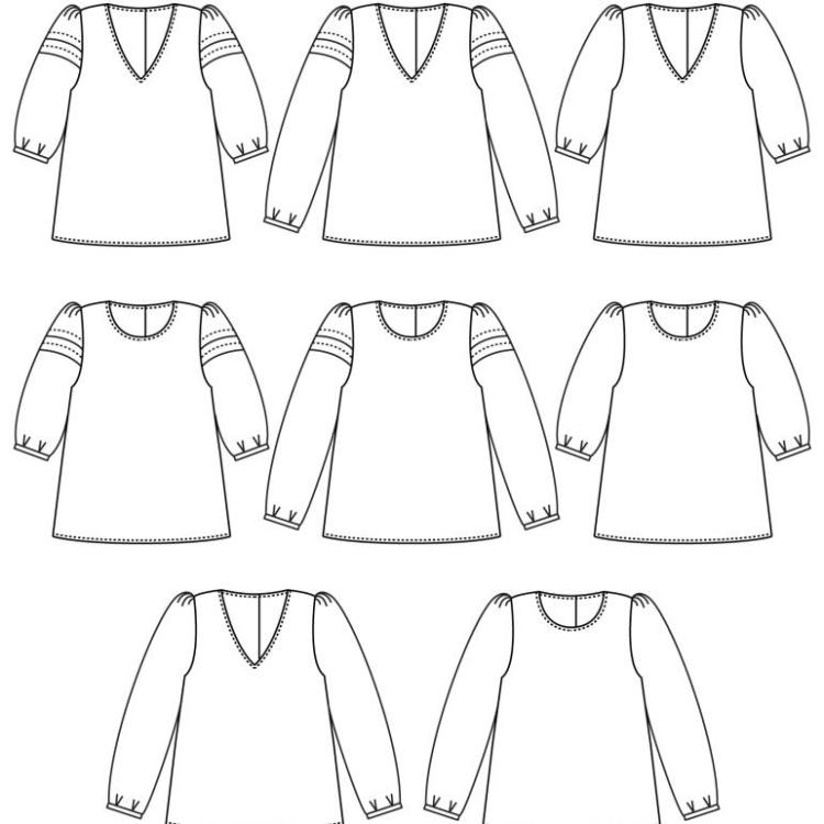 Manches longues avec plis, encolure en V