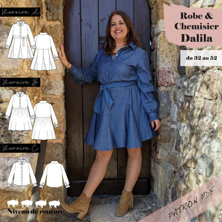 Dalila est un super patron à avoir dans sa patronthèque car il comprend deux patrons en un dont le patron d’une très jolie chemise aux détails féminins.
