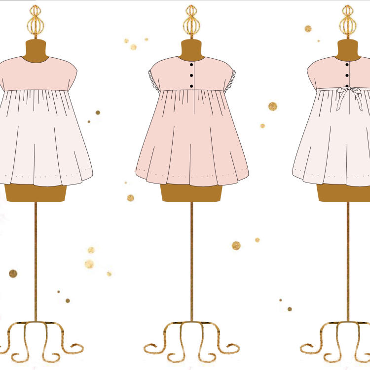 | Front & Back Bodice (Main) & Back Skirt Placket | 5/8 yd. | 3/4 yd. | 3/4 yd. | 3/4 yd. | ||