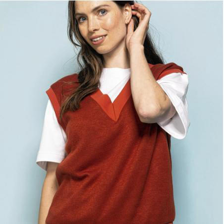 Conseil tissu supplémentaire : Nous avons utilisé un tissu tricoté fin pour le pull et du tissu côtelé pour les bordures. Ce haut est idéal pour jouer avec les couleurs. Attention, seuls les tissus extensibles (jersey épais, tissu à sweat, tissus tricotés) sont adaptés à ce haut. Si vous souhaitez réaliser les bordures dans le même tissu que le haut et non en tissu côtelé, vous devrez peut-être ajuster la longueur des parties prévues en tissu côtelé (les rallonger) si ce tissu est moins extensible que le tissu côtelé.