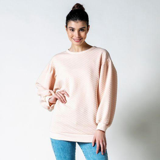 Conseil tissu : Quoi que ce modèle soit ample, vous ferez bien de choisir un tissu pas trop souple, mais pas trop épais non plus. De cette façon, l’effet bouffant et les plis des manches ressortiront mieux