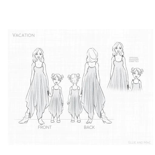 This romper is designed to be made using 50%, 4-way stretch knit fabrics.