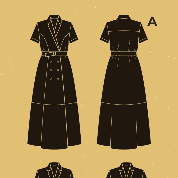 Version B - Jupe au genou et manches longues boutonnées