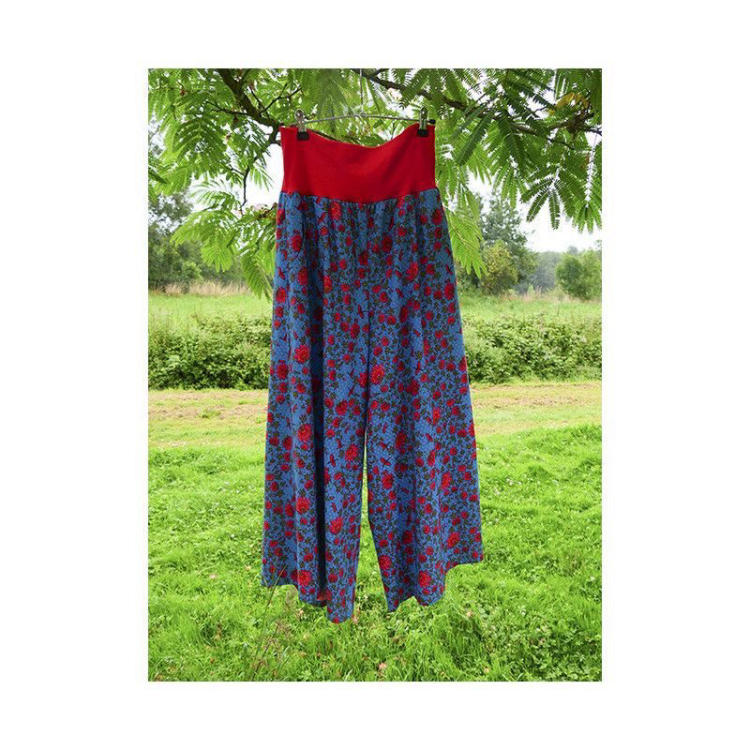 Quantité de tissu nécessaire : 2 hauteurs de pantalon en 140 cm (ça dépend de votre taille mais environ 2 m ).