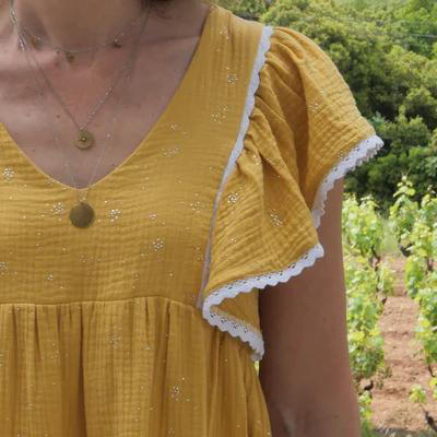 - Tissu : 1,65 (T32-36) - 1,70 (T38-42) - 1,90 (T44-46) - 2,20 (T48-52)