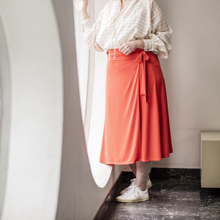 Des tissus en jersey ou tissés conviennent pour ce modèle. Pour vous, ce sera une suédine, du satin, une viscose souple avec un petit imprimé, du cuir synthétique doux, interlock, bouclette ou un jersey fin ? Quelle tentation, réalisez plusieurs Ginny !