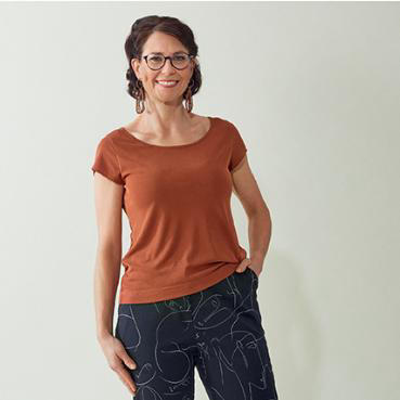 Tissu conseillé : maille côtelée en modal mélangé (155g/m², taux d'élasticité 20%)