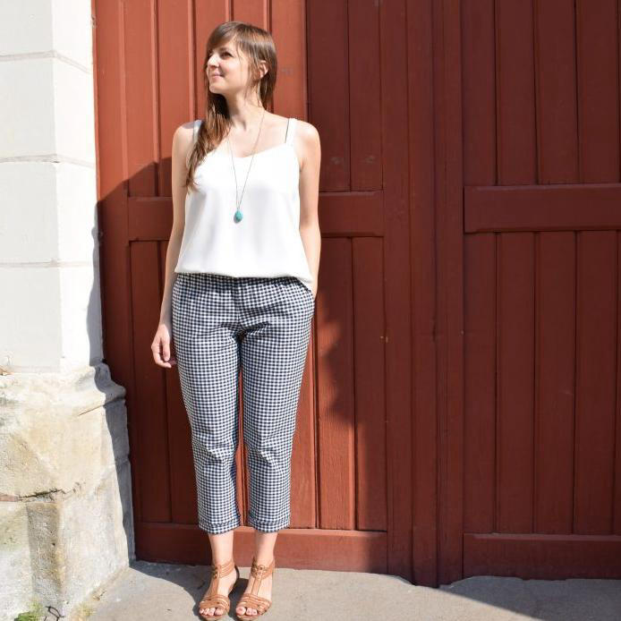 - Optionnel: 30 cm de doublure de 1,40 m de laize (pour les ceintures intérieures et les poches).