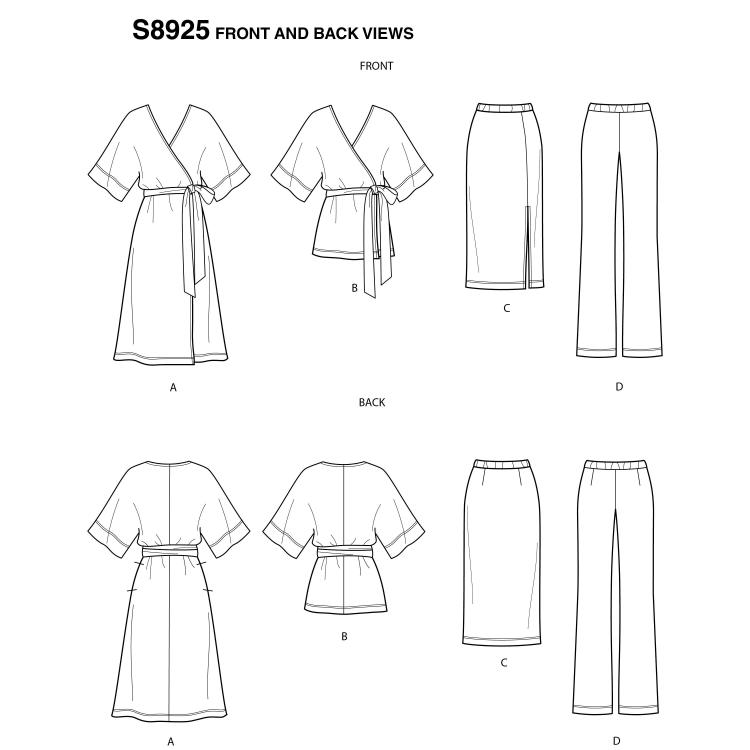 S8925 - Simplicity Misses' Knit Pants, Skirt, Wrap Dress and Wrap Top