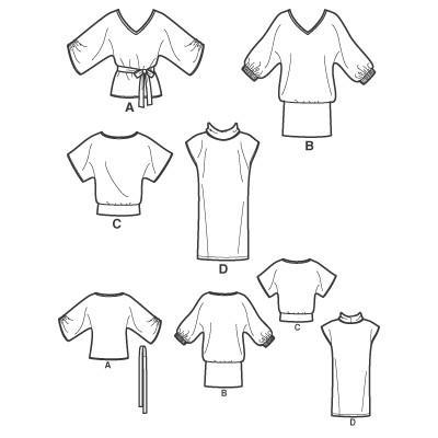 S2804 - Simplicity Misses Knit Mini Dress or Top and Tie Belt Tranches d'âge Féminin Adulte Marque Simplicity