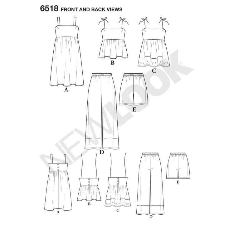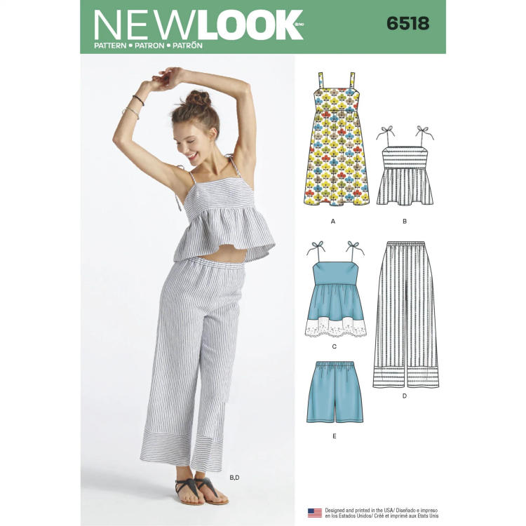 N6518 - New Look Pattern Misses' Dress, Tops in Two Lengths, Trousers, and Shorts Tranches d'âge Féminin Adulte Marque New Look