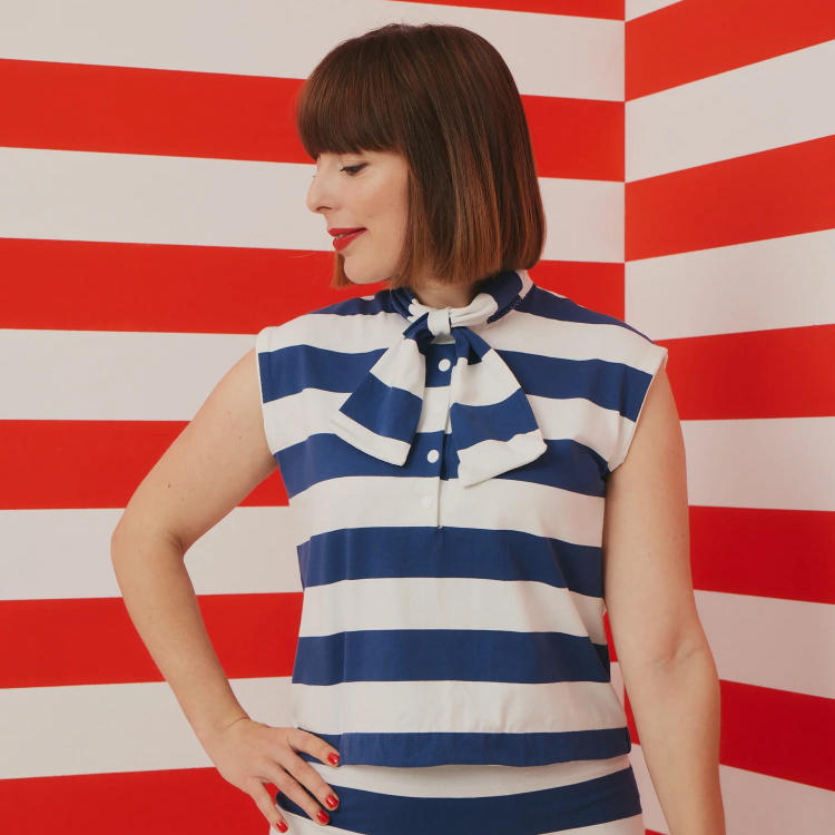 49-1 - Polo shirt with bow collar (Chemisier patte polo, col noué) Tranches d'âge Féminin Adolescent Adulte Marque Sister Mag Patterns
